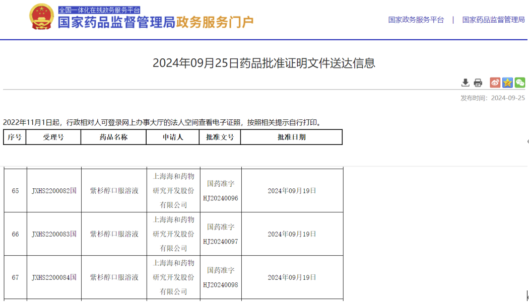 Today, Shanghai, China--- Haihe Biopharma Co., Ltd. ( "Haihe Biopharma" or the “Company”) and DAEHWA PHARMACEUTICAL CO., LTD. (“DAEHWA Pharmaceutical”) announced that the Paclitaxel Oral Solution (RMX3001) in gastric cancer (GC) has been approved by the National Medical Products Administration- (NMPA).