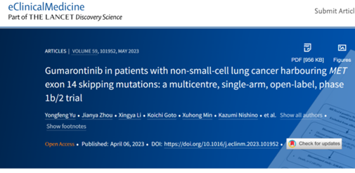 今日,海和藥物宣布:其具有全球自主知識產(chǎn)權(quán)的口服強(qiáng)效、高選擇性的小分子MET抑制劑谷美替尼片(研發(fā)代號:SCC244)關(guān)于對具有MET外顯子14跳變的局部晚期或轉(zhuǎn)移性非小細(xì)胞肺癌患者中有效性和安全性的關(guān)鍵II期GLORY研究(最新結(jié)果成功發(fā)表于《eClinicalMedicine》期刊(The Lancet Discovery Science旗下雜志,影響因子17.033)。上海市胸科醫(yī)院陸舜教授為該文通訊作者。