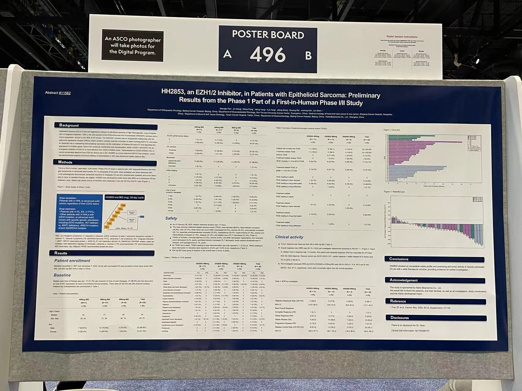 今日,專注于腫瘤創(chuàng)新藥物的發(fā)現(xiàn)、開發(fā)和商業(yè)化公司—海和藥物(海和)宣布,公司自主開發(fā)的、具有完全知識(shí)產(chǎn)權(quán)的創(chuàng)新藥物EZH1/2雙重抑制劑HH2853治療上皮樣肉瘤患者:首次人體I/II期研究在上皮樣肉瘤人群中的1期部分的初步結(jié)果亮相2023美國(guó)臨床腫瘤學(xué)會(huì)年會(huì)(ASCO Annual Meeting 2023),并獲得大會(huì)壁報(bào)展示。本次報(bào)告總結(jié)了HH2853用于治療上皮樣肉瘤患者的安全性和臨床活性。
