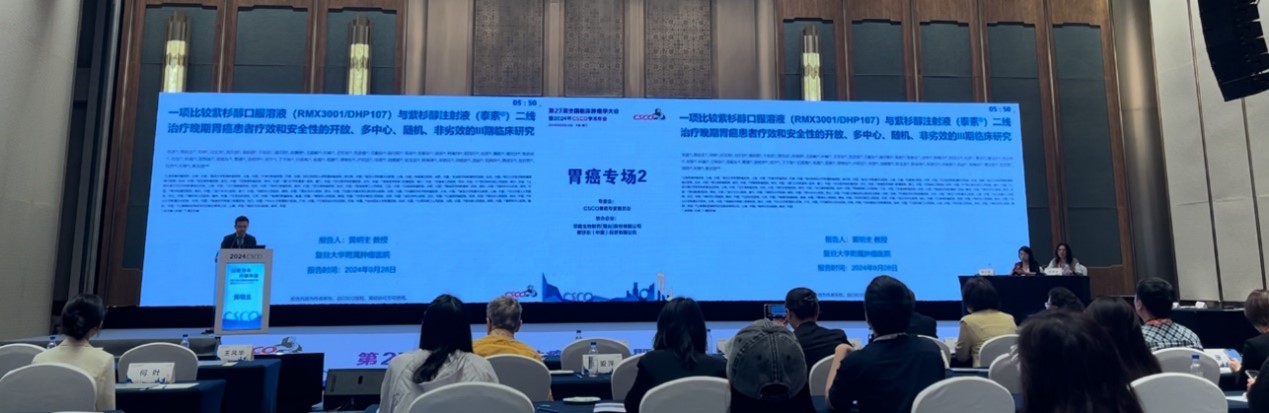 RMX3001作為全球第一款研發(fā)成功的口服劑型紫杉醇藥物,已在韓國獲批用于胃癌二線治療。在中國以全國Leading PI李進(jìn)教授團(tuán)隊(duì)和秦叔逵教授團(tuán)隊(duì)領(lǐng)銜的一項(xiàng)開放、隨機(jī)對(duì)照、多中心的III期研究(CTR20190050)中,再次證實(shí)紫杉醇口服溶液對(duì)經(jīng)一線治療后的不可手術(shù)切除、復(fù)發(fā)或轉(zhuǎn)移性晚期胃癌療效明確、安全可控,并于今年9月19日獲得國家藥品監(jiān)督管理局(NMPA)批準(zhǔn)在中國大陸上市:用于一線含氟尿嘧啶類方案治療期間或治療后出現(xiàn)疾病進(jìn)展的晚期胃癌患者的治療。